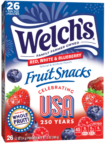 Welch’s® Fruit Snacks come in numerous distinct and delicious varieties: Welch’s® Fruit Snacks, Welch’s® Juicefuls® Juicy Filled Fruit Snacks, Welch’s® Fusions™, Welch’s® Absolute Fruitfuls™ Fruit Strips, Welch’s® Fruit ‘n Yogurt Snacks and Welch’s® Fruit Rolls. Each variety is made with Real, Whole Fruit and no artificial dyes for a mouthwatering experience the whole family can enjoy. Also discover Welch’s® Zero Sugar Fruity Bites – Zero Sugar, 100% Taste! Try them all!