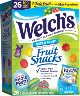 Welch’s® Fruit Snacks are available in fun Easter shapes. Made with Whole Fruit as the Main ingredient for a delicious taste the whole family will love! Available in various packaging options to suit all Easter occasions from Egg Hunts to Easter Basket fillers.