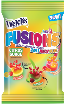 Ready to Taste the Ultimate Remix? Welch's® Fusions deliver a taste adventure where two delicious fruits come together in every piece – one flavor on the chewy fruit snack outside and another flavor in the juicy center! Fusions comes in 3 deliciously unique varieties: Original Fruits, Citrus Surge, and Tropical Tornado. Experience the FUSION in Every Bite!